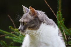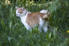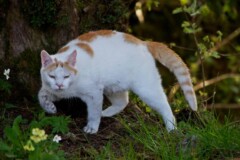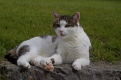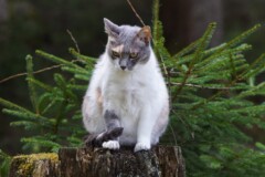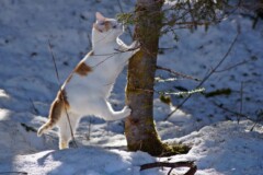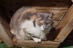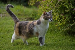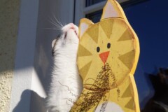 2022 hat es dich mit einem Virus FiP erwischt ! Aber du warst so tapfer gewesen. Jeden Tag wurdest du gepickst. Am Anfang hast du dich nicht gewehrt, du wolltest auch nicht fressen… aber dann auf einmal … Klar, es gab gekochtes Hühnchen! Nach gut 2 Wochen warst du Fip-Frei, und es gab keine Spritzen mehr. Jetzt konntest du wieder deinem Hobby nachgehen… viele Mäuse im Wald und in der Wiese fangen. Du warst aber fast immer allein unterwegs gewesen. Die anderen Katzen hast du akzeptiert, bis auf deinen Lieblingsbruder den Puccini. Da konnte man super mit spielen! Aber auch mit Bolleke!