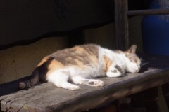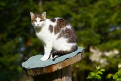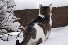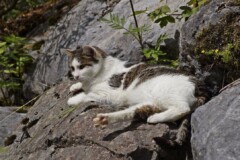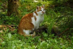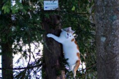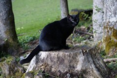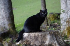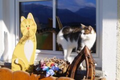 In Österreich fühlte er sich wohl… endlich konnte er seine Freiheit ausleben, aber auch hier war er jeden Abend pünktlich zum Fressen da. Bis auf ein einziges Mal…. Zwei Tage war er weg gewesen, das war im Jahr 2017. Wieder habe ich ihn abends gerufen.. dann kam ein klägliches Miau aus einem der Katzenhäuser, die draußen stehen. Aber er kam nicht raus aus dem Haus, also am Nackenfell heraus gezogen und ab ins Haus. Er hat sich dann sofort übers Futter hergemacht.