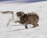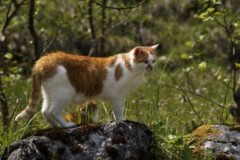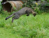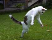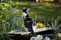 Er kämpfte sich weiter durch sein wildes Katzenleben. Auch mit drei Beinen konnte man galoppieren, über die Bäche springen und auch auf die Tische hochspringen. Von seiner Mama Sissi hat er immer wieder eine „gefangen“, wenn es ihr zu wild wurde.