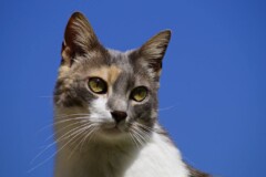 Filou ist im Jahr 2008 geboren und eine bildhübsche dreifarbige Kätzin. Man kann sich stundenlang mit ihr unterhalten, sie redet.. redet... und redet ! Was sie mir erzählen möchte.. keine Ahnung, aber sie gibt überall und immer ihren Senf dazu!