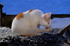 Jeden, fast jeden Winter, bekam sie Depressionen, denke da.. das die kalte Jahreszeit sie stark an ihre Vergangenheit erinnert hat. Sie hat letztes Jahr extra eine Felldecke von mir bekommen.. die lag an meinem Fußende und sie hat sich immer darin eingekuschelt. Sie fand die mega-toll. Es war ihre Decke, die anderen durften sie natürlich auch mit benutzen.