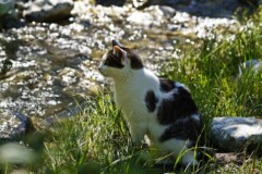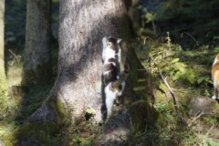 Dann kam der Tag.. wo du das erste Mal mit wandern gehen solltest. Wir sind nur ein kleinen Stück gegangen.. zum Bach hinunter. Mutig warst du gerade nicht.. aber die anderen haben dir immer wieder gezeigt, geholfen… Baum hoch und runter, über den Bach springen. Aber über den Bach springen.. nein.. das wolltest du noch nicht. Du bist mit den anderen dann am Ufer auf der anderen Seite mitgegangen. Das war das einzigste und letzte Mal.. wo wir gemeinsam gegangen sind. Eine Woche später hast du Fieber bekommen, hast nur teilnahmslos im Wohnzimmer auf der Couch gelegen, du wolltest nicht raus. Also.. sind wir in die Tierklinik Anif gefahren. Du hast ein fiebersenkendes Mittel und noch ein AB bekommen. Nach einigen Tagen wieder das gleiche.. du wolltest nicht fressen, diesmal bist du eine Woche in der Klinik gewesen. Klinik heißt leider auch … Käfig.. Gitterstäbe.