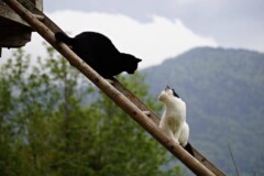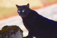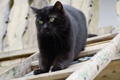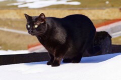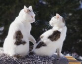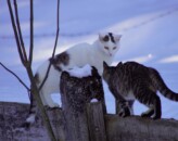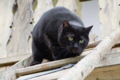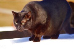 Als Rainbow gegangen ist, hat der Schwarze ihn überall gesucht.. drinnen sowie draußen.. obwohl er von ihm Abschied genommen hat. Dann hat Becci ( Rebecca) die Rolle von Rainbow übernommen. Der Schwarze wurde ab sofort von ihr liebevoll geputzt, es wurde nur noch gemeinsam gefressen. Obwohl er von ihren Essmanieren nicht gerade begeistert war. Sie nieste und rotzte grundsätzlich in das Futter hinein... dann waren die anderen Katzen weg .. und sie konnte mit dem Schwarzen allein in Ruhe weiter fressen. Beide sind dann Ende letzten Jahre vom Dachgeschoß in die unteren Etagen abgewandert.