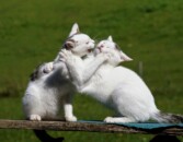 Dann kam der Morgen… Sonnenschein.. und du durftest nach einer langen Zeit nach draußen. Keine Gitterstäbe.. keinen Käfig .. einfach nur nach draußen in die Natur. Da hast das Gras unter deinen Pfoten gespürt.. dann hast du dich in die Wiese gesetzt.. Augen zu.. vielleicht dachtest du, dass du träumst.. ja .. so sieht ein Katzenparadies aus. Dann die Augen wieder auf… es ist die Wirklichkeit.. dann bist du durch die Wiese galoppiert und hast mit dir selbst gespielt. Es war sooo schön, dir zu zusehen.