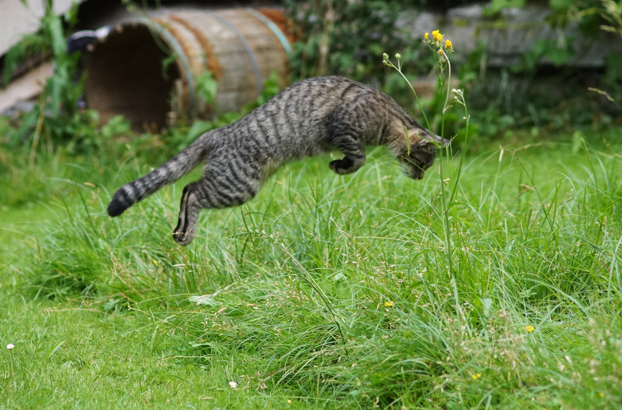 Er kämpfte sich weiter durch sein wildes Katzenleben. Auch mit drei Beinen konnte man galoppieren, über die Bäche springen und auch auf die Tische hochspringen. Von seiner Mama Sissi hat er immer wieder eine „gefangen“, wenn es ihr zu wild wurde.