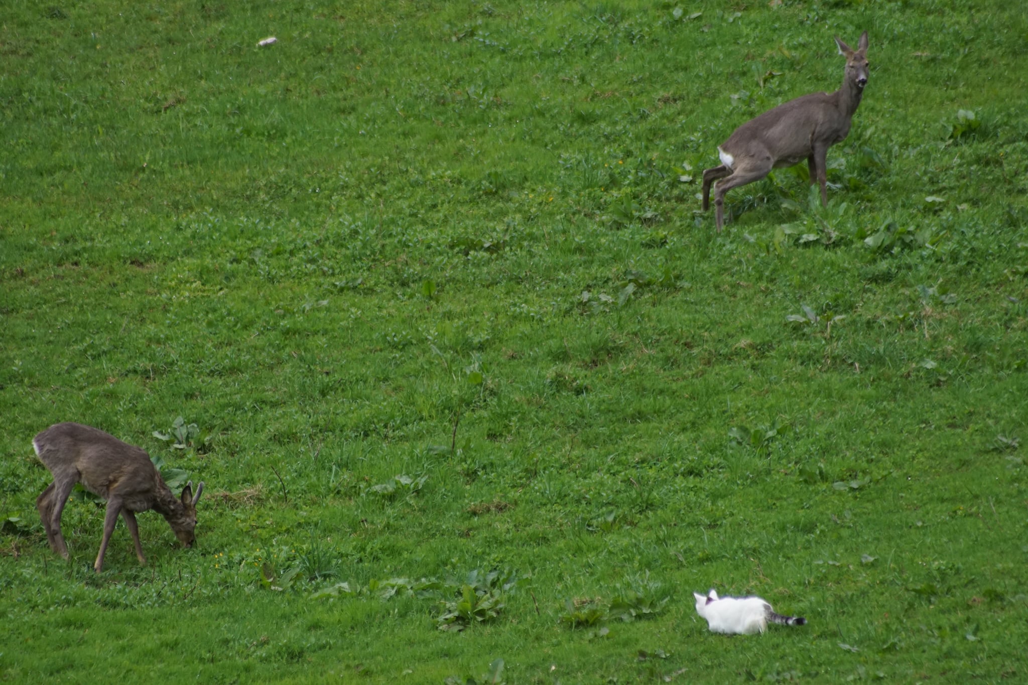 Irgendwann ist sie dann mutig die Balkonleiter in den Garten herunter gegangen, kurz durch den kalten nassen Rasen gelaufen und zielstrebig durch die Haustür wieder hinein.