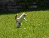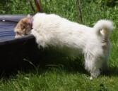 Polly... Im Garten mit einer Spielzeugmaus zu spielen, das macht auch Spass.