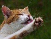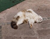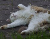 Wilma... Langhaarkatze in den Regen gekommen... nun trocken wälzen. Die Dauerwelle sieht gut aus.