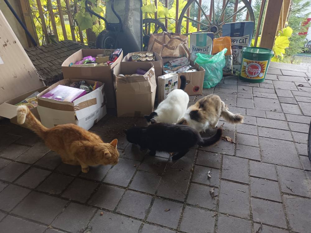 Vielen herzlichen Dank für die sagenhafte Futterspende liebe Daniela Sch. und Hunde in Not Pfarrkirchen e.V. Es würde etwas mitgeholfen und die Nachbarn schauten zu. 55 Katzen und 1 Hund sagen vielen lieben Dank!